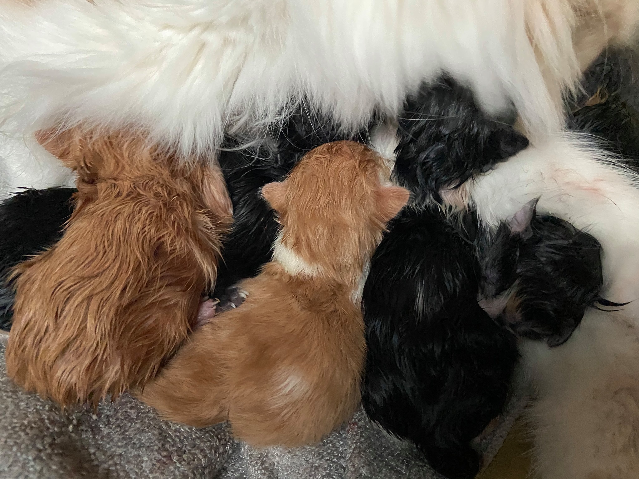 8.6.2021 Huomenna pikkuiset ovat jo 5vkoisia. Pentulaatikko on otettu pois käytöstä, sillä pennut eivät siellä enää olleet. Kaikki juoksentelevat pitkin poikin asuntoa ja tutkivat innokkaasti. Sellainen juttu myös, että kyselyitä tulee nyt koko ajan runsaasti. Alustavasti kaikki ovat varattu, virallisia varauksia en ota vastaan vielä tässä vaiheessa.