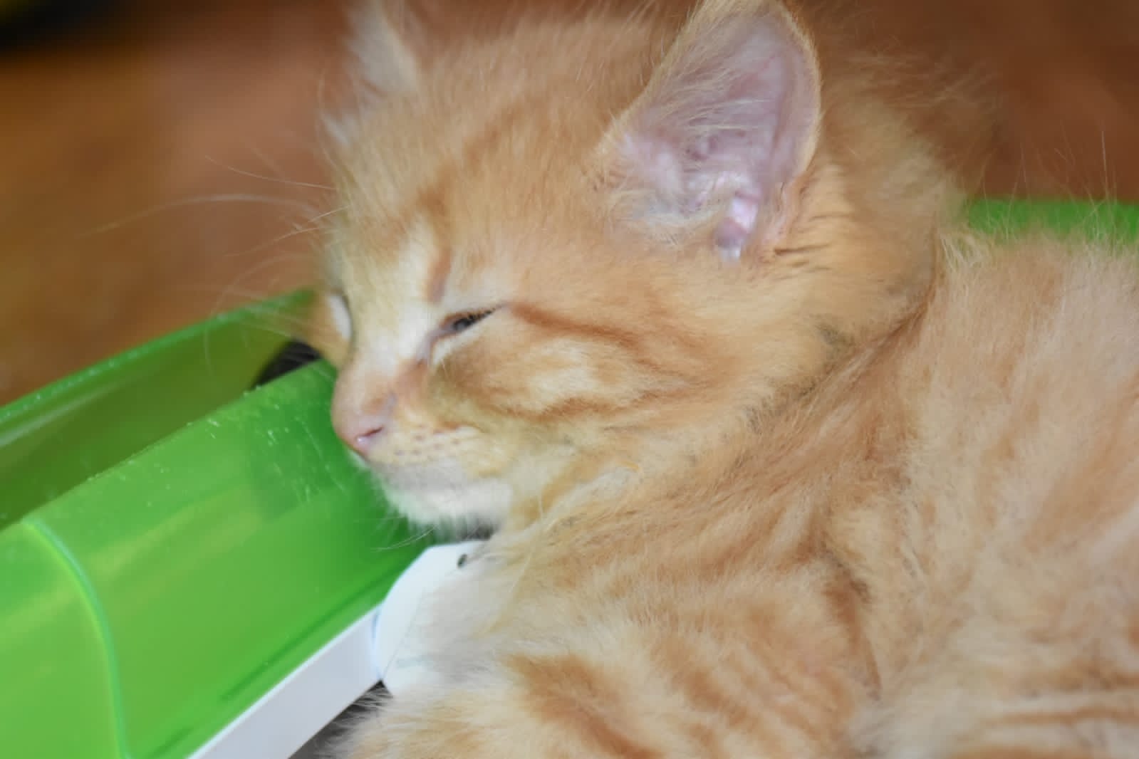 26.5.2021 Kolmeviikkoiset pikkuiset saivat pentulaatikkoon uuden sisustuksen; ruoka-astiat, vesikupin ja hiekkalaatikon. Tästä se lähtee!