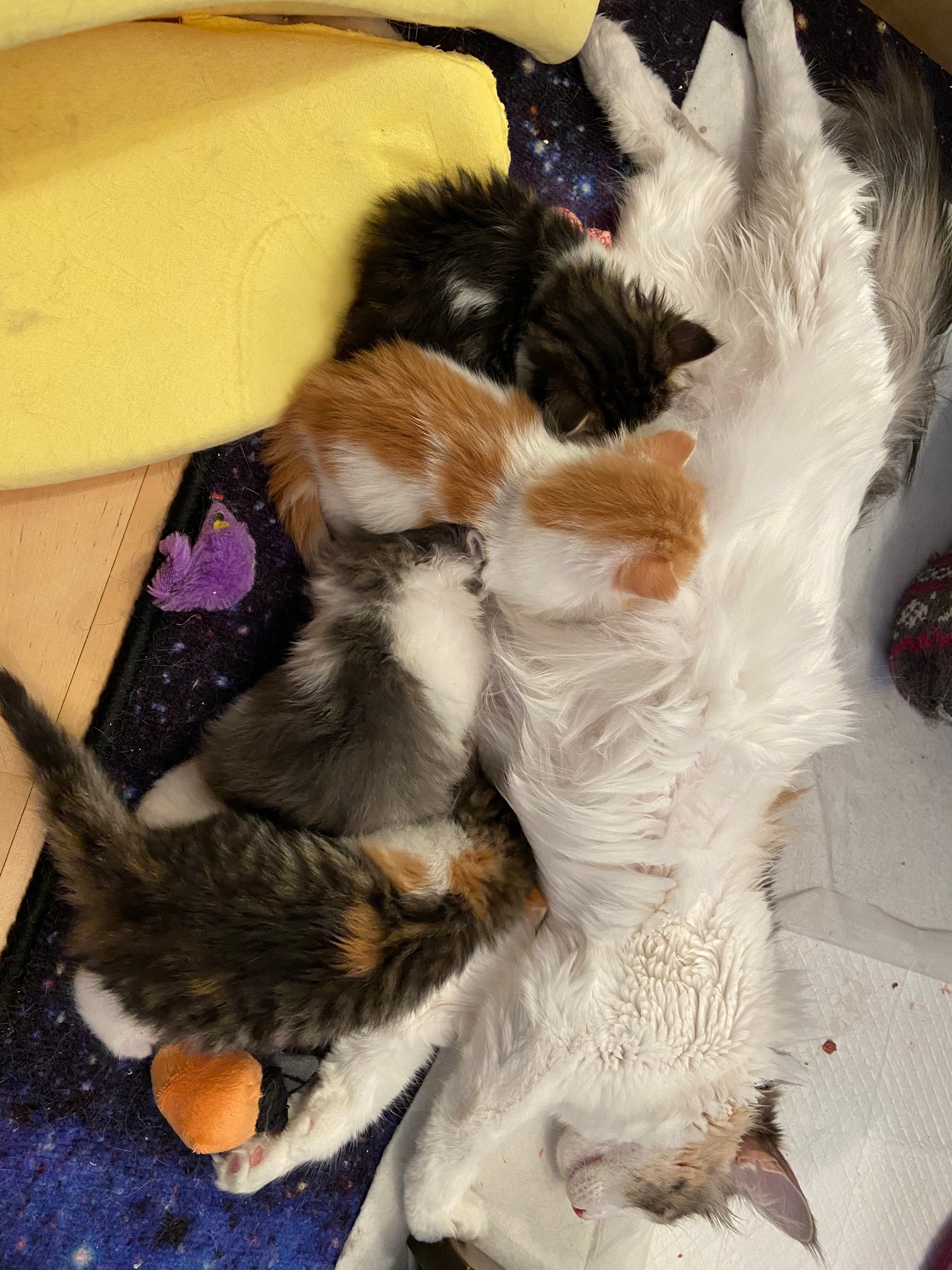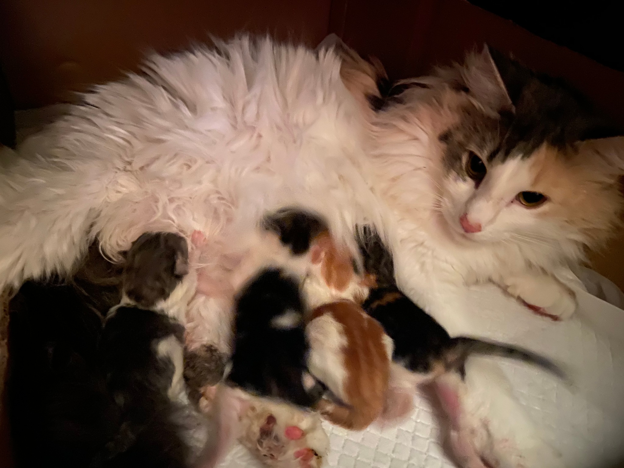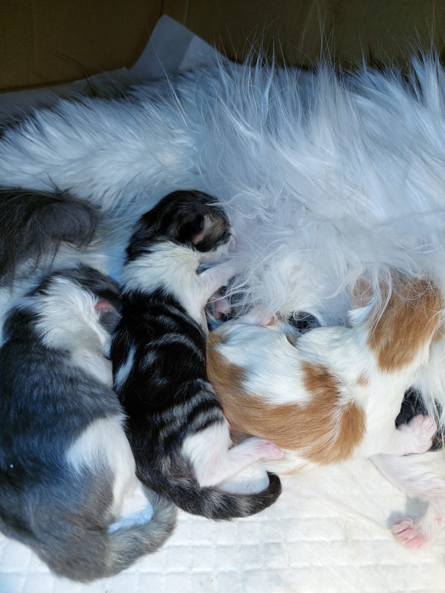 5.3.2022 Neljä suurta pienokaista syntyi, pienin 130g ja isoin 138g. Emo ja pennut voivat hyvin, alustavasti kaikki lemmikkipennut varattu. Sijoituskotia tulee yksi pentu etsimään.