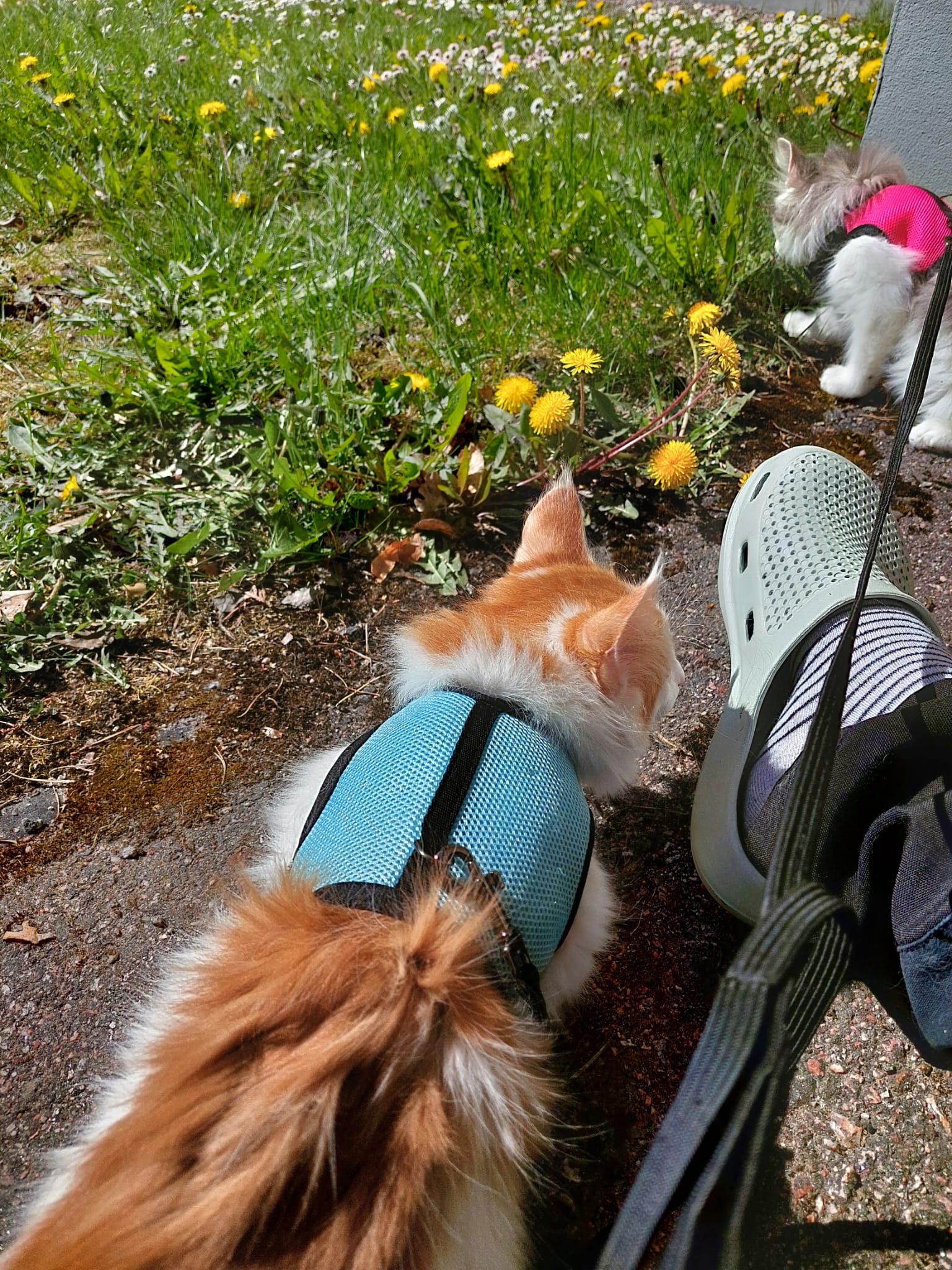 13.5.2022 Pennut pääsivät ulkoilemaan! Reippaimpia valjaissa olivat Kasper ja Sini, mikä ei sinänsä tullut yllätyksenä.