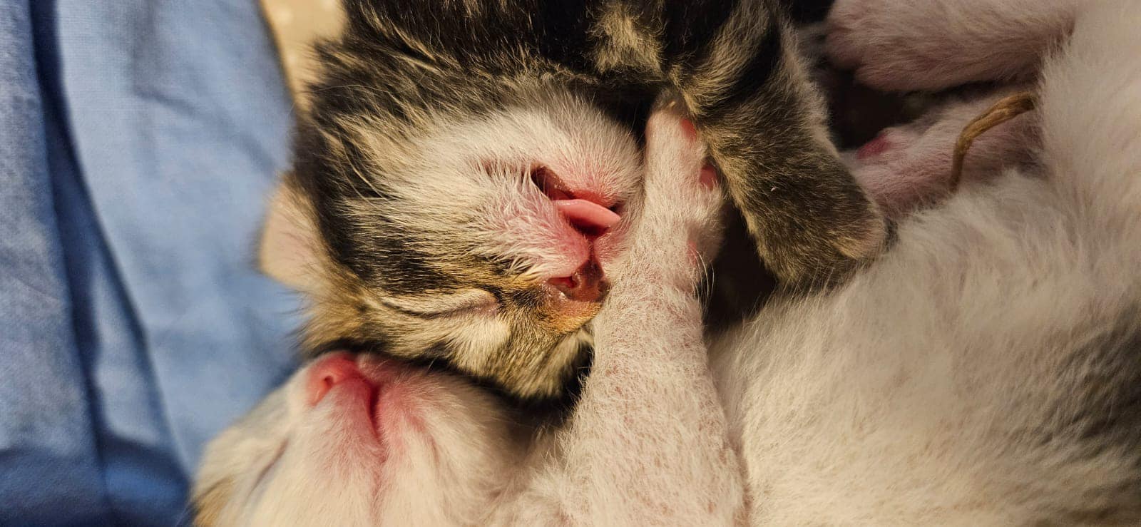3.9.2023 Nämä pennut ovatkin hätäisiä! Ensimmäisellä on jo silmät auki kokonaan.