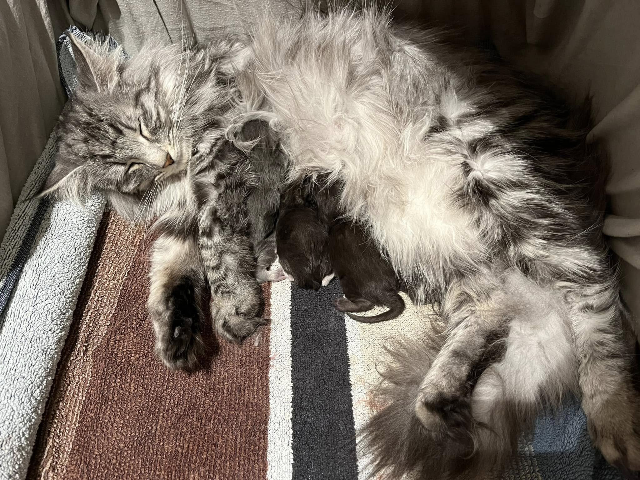 23.1.2025 Neljäs pentu syntyi yön aikana ja kaikki voivat hyvin.